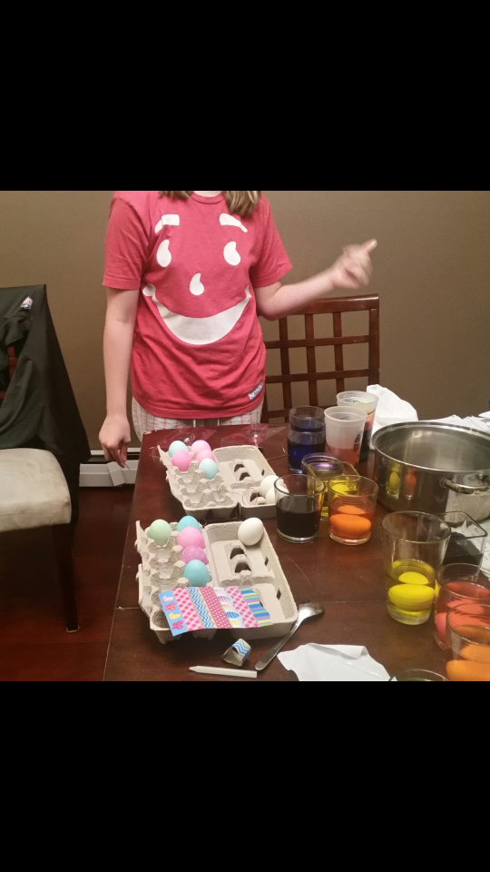 It is around the time my stress level is peaking and I'm at the height of my wallowing, that I take notice of the children. Then the annoying nuances go away and all I see is joy, excitement, and love. Not just on my children, but on all children. Oh yes, now I remember, the holidays are a beautiful thing with great meaning. Then I focus on being grateful for having the chance to visit with such great relatives and the real meaning of why the holiday even exists. That lasts for about 15 minutes, then the egg timer buzzer goes off and it's time to paint some more stupid eggs. Now I know why they were always drinking wine in the bible!
